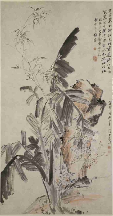 《芭蕉竹石图》轴,清,李鱓绘,纸本,设色,纵195.8cm,横104.7cm。