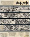 夏昶画竹,以其精深的功力和独树一帜的艺术风格名重一时。他一改前人画竹独幅数竿的表现形式,而用巨幅长卷描绘竹树的千竿万梢,同时还“延之以洲渚,加之以风雨”,更显浩浩荡荡,气势恢宏。他笔下的墨竹已不仅仅是简单的文人式的寄兴抒怀,而是还竹于其自然的生长环境之中,在竹画中融入山水画的笔墨意境。此卷竹林随湘江两岸景致的变化而隐现,起自淡阔的沙洲,之后是平缓的坡陀,继而是坚硬的岩石,又入清冷的江水,再后是壁立的山崖,最后经急湍飞瀑、汩汩溪流而入山,竹树或整或零,或疏或密,老干新枝,各尽其态。画家充分利用了长卷的广度精心描绘出一种起伏张弛的流动性和情节性,实际上是传统墨竹与水墨长卷的结合。夏昶画竹,强调气韵,主张“一气呵成”,“画巨幅尤须如此”,此卷竹叶落墨即是,不见复笔,山石以斧劈皴法大笔侧锋挥扫而成,从首至尾,气脉通连飞动。