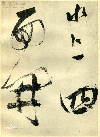 这幅作品的用笔更斩截猛利,字形大小、墨色枯浓的对比更强烈。开篇“山”字,粗笔浓墨劈头而下,给人以强烈的力量感和摧毁感。“居”“仰”“人”的斜撇,风樯马阵,势不可挡。几乎每个字中都有这样的重笔。许多该横、该捺的笔画,被猛利粗重的“点”代替,尤其是章草笔法的掺入,墨象声势浩大,气势撼地。在这种笔触中,米芾的矫健,黄山谷的变化一一经过他的融化变成一种独特的面目。