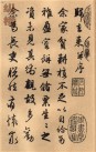 赵孟頫多次书写陶渊明的归去来辞。现存於世的墨迹便有三件之多。一是现存於辽宁省博物馆一件。二是延佑五年书写,现存於湖州市博物馆的一件。三是这卷书於大德元年,现藏於上海博物馆的『辞并序』。这卷为大德元年(公元1297年)作。行书,纸本长卷,纵46.7厘米,横453.5厘米。共48行,行10字左右。藏上海博物馆。卷前有其弟所绘陶潜像一幅并有题记,并盖有“古鉴阁中铭心绝品”、“经协久远期无限”、“韵篁馆赏图书“和“秦文钤”等印。该帖为中期作品,以行书为主,间以草法,用笔珠圆玉润,宛转流美,神气充足此卷深得“二王”正传,用笔娴熟,起笔藏露锋交错,收笔锐钝有致。虽无确切年款,但综观全卷,遒劲姿媚,一气呵成,可初步断定为五十岁以后之佳作。赵孟頫《归去来辞》以楷、行、草相杂,结构雍容宽博,通篇徐疾有致,平和中见灵动。