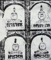 《比丘洪宝造像》,亦称《张法寿造像》。东魏天平二年(535)四月刻。《中国书法大辞典》著录,朵云轩藏拓版。从整体看,其造像的艺术价值要大于题记书法的价值。其主造像系浅浮雕,线条优美流畅,人物神态安详,四周饰物刻画栩栩如生,再现了南北朝时期民间艺人深厚的造型功化正是其中的无穷趣味。特别是中间占有两格,塑一坐二立三尊佛像,打破了千篇一律的格局,使整件造像作品生动有致,极富现代感。由于题名是造像的附属品且数量较多,故内容较简单,位于每尊小佛像的左侧,亦有一定的文本格式。一般不作精雕细刻,或是匠人雕像之余连写带刻一次完成,或是直接奏刀完成。在刻法上往往采用了直刀切入的简化刀法,同时民间匠人的书写意识也就流露得更多些。