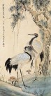 本幅画二只白鹤在梅枝间翩翩起舞。画家以顿挫的侧峰描绘了如剑如戟、铁干清曜的梅树,那参差交错的枝条,棱角分明的花瓣,突出了梅花天生寒骨、峥嵘向上的铮铮傲骨。鸣飞的白鹤,一改光洁华美、悠闲典雅的贵族气象,而以苍劲的笔触写出长颈后缩收紧,雪羽铺展飞扬的奇特造型,突出了仙鹤卓而不群的风神和凌空向下的劲势。