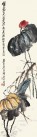 “一骑红尘妃子笑”荔枝乃岭南佳果,遂成画家屡画不厌的题材。此画作写来自然随意,枝头硕果累累,色泽鲜艳,墨彩淋漓。枝条穿插,树叶浓淡相和,层次丰富。画钤“苦铁欢喜”印,可见吴昌硕对此题材及画作也自觉惬意。