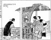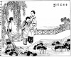 《吴友如画宝》中的另一类是《古今人物图》和《古人百美图》这是随兴之所至的作品,未有严格的选择标准,然而都是见于史籍、传诸口头的历史和传奇人物,如将杜甫《饮中八仙歌》中张旭、李白、贺知章等忘情于酒醑的恣纵状貌予以尽情刻划,使如见其人如闻謦欬。画陶渊明的隐逸、米芾的痴迷、倪云林的洁癖、林和靖的孤高等等,这些作品构图变化多端,惯用马远一角之法,取精用宏,人物之仪态亦有创意。还有一类人物画则是古诗文意,如画苏东坡《后赤壁赋》“人影在地,仰看明白”意境,苏东坡、黄庭坚、佛印三人徜徉于秋夜,静寂萧瑟之气凛然画面。又如画刘基《卖柑者言》以讽刺官场之腐败。卖柑者之笑谈,刘基之“默默无以应”的神态跃然纸上。