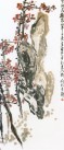 画家以深浅赭墨写梅画石,以浓淡变化的曙红点染梅花,红梅的造型形式感很强,梅枝的穿插布局都经过了仔细地推敲,用笔老辣,笔力苍劲,浓淡相宜。梅花的点染也脱离了自然状态下的梅花,已不是真实地写照,而是对画家心中之梅更超脱、更本质的诠释。