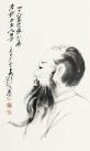 张大千写生水墨减笔肖像画,讲究笔墨,妙传神情,表现了他写生肖像的超凡能力。水墨意笔《三十四岁自画像》,1932年作,大半身左向侧面立像,长髯短发,描绘较细,一笔点睛,十分传神;意笔淡墨钩画肩背部。左侧草书题款。
