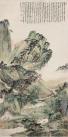 此幅青绿山水,描绘了安徽淮东地区、滁县琅琊山的怡人风光。四面环山,巍峨叠嶂,诸峰峭拔,古木苍郁,蔚然而深秀。山行六七里,渐闻水声潺潺,泠泠悦耳。近窥之,于两峰间雾气氤氲、清泉涌出,湍湍珠玉,晶莹四溅,此乃“酿泉”也。山道逶迤、蜿蜒蛇行,峰回路转,有亭翼然临于泉上,名“醉翁亭”。画面中,太守与客来饮于此,酿泉为酒,野肴铺席,众宾客谈笑甚欢,随仆更是忙得不亦乐乎,而太守却早已“颓然乎其间”。正如欧阳修曰:“醉翁之意不在酒,在乎山水之间也。山水之乐,得之心而寓之酒也。” 三十年代,张大千痴迷于青绿山水,广学博取、集其大成,从文征明、仇英处汲取养分和灵感。其一生所绘制的“青绿山水”,大多限于三十年代后期至整个四十年代的十余年间,且勾绘有限、作品稀少。