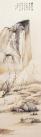 一九四七年七月,张大千游于西康,同年购得明代画家唐子畏《长松高士图》,并在此年作《仿石疗上人夏山高逸图》,此图应为高士思想与所游真景的结合之作,山石、溪流皆作平面状,轮廓方硬,阔笔擦表现一文士闲坐石崖之上,幽谷之中坐听松风泉鸣,全画空寥寂静。