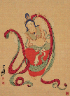 款识:仿敦煌漠高窟唐人笔作天女散花图。静波仁兄方家属正。甲申嘉平,大千居士张爰。钤印:张爰、大千毫发