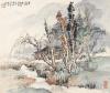 关山月,当代岭南画派的代表人物之一。山水、花鸟、人物皆能,尤长于山水。30年代末到40年代末,继承中国写意画中水墨为主与古代壁画中人物画的方法,同时明显地吸收西画的写实手法,写实性强,较注重形体刻画,而不太强调传统笔墨趣味;50年代到70年代的约30年间,以饱满的热情描绘现实生活,作品充满了浓厚的生活气息和地区色彩,还保持着写实的风格,同时加强了笔墨的表现力和对作品内涵意蕴的扩展和深化;80年代后,进一步增加了笔墨、意境等中国画传统在作品中的万分,明显地从传统中汲取了更多的营养,用笔更加泼辣、奔放、恣肆,一些画面处理较为简练、概括,另一些画面又显得丰富、蕴藉,对“形”的关注转向对“神”的关注,笔墨意趣也大为加强。最大成就在于,以山水画、花鸟画表现较强的社会意义和精神内涵,是对传统中国画的拓展,使中国画在新的时代更具丰富的表现力。素有“当今画梅第一人”之称。此作品创作于1945年的成都。亦是赠与刘开渠夫人程丽娜的。当时关山月先生的西南、西北写生画和部分敦煌临画正在成都、重庆展出。关山月重视写生,其作品往往立意不凡,格调高雅,此作构图简约,笔墨清新流畅,树木婀娜,河流蜿蜒,山峦幽远,饱含一种浓郁的生活气息。