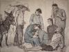 蒋兆和 (1904--1986):原名万绥,3岁时改名兆和,1904年生,祖籍四川,自幼家贫。中央美术学院教授。1920年至上海,曾画广告,从事服装设计,并自学西画。1927年受聘于南京中央大学,为图案系教员。1930-32年任上海美术专科学校素描教授,并参加临时青年爱国宣传队绘抗日宣传画。1935年至北平,次年返四川正式开始现代水墨人物画创作。1937年春返北平,任京华美术学院教授、北平艺术专科学校教师,并举办个展。1947年受聘于国立北平艺专。1950年起任中央美术学院教授。曾当选中国美术家协会第2、3届理事、为第4届顾问、中国文联委员、中国画研究院院务委员、第3、4、5、6届全国政协委员、民盟中央文教委员会委员。1987年在深圳、北京两地与夫人举办书画展。早年兼事工艺美术、油画、雕塑,早期作品有:《卖小吃的老人》、《卖子图》及巨幅画卷《流民图》等;后期作品有《小孩子与鸽子》、《杜甫像》等。《杜甫》获第六届全国美展荣誉奖。出版有《蒋兆和画册》、《蒋兆和画集》、《蒋兆和画选》等。发表有《国画人物写生的教学问题》、《关于中国画的素描教学》等论文