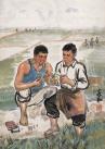 蒋兆和(1904—1986)现代人物画家,是现代卓越的人物画家和美术教育家。被称为20世纪中国现代水墨人物画的一代宗师,中国现代画坛独领风骚的艺术巨匠。他在传统中国画的基础上融合西画之长,创造性的拓展了中国水墨人物画的技巧,其造型之精谨,表现人物内心世界之深刻,在中国人物画史上达到了一个新的高度。曾任南京国立中央大学(国立中央大学1949年更名为南京大学)、中央美术学院教授。