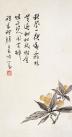 题识:绵绵瓜瓞。民之初生。自土沮漆。古公亶父。陶复陶穴。未有家室。古公亶父。来朝走马。率西水浒。至于岐下。爰乃姜女。聿来胥字。周原膴膴。堇荼如饴。爰始爰谋。爰契我龟。曰止曰时。筑室于兹。乃慰乃止。乃左乃右。乃疆乃理。乃宣乃亩。自西徂东。周爰执事。乃召司空。乃召司徒。俾立室家。其绳则直,缩版以载。作庙翼翼。捄之陾陾。度之薨薨。筑之登登。削屡冯冯。百堵皆兴。鼛鼓弗胜。乃立皋门。皋门有伉。乃立应门。应门将将。乃立冢土。戎丑攸行。肆不殄厥愠。亦不陨厥问。柞棫拔矣。行道兑矣。混夷駾矣。维其喙矣。虞芮质厥成。文王蹶蹶生。予曰有疏附。予曰有先后。予曰友奔奏。予曰有御侮。岁在戊寅暮秋,园中木落,除架得瓜,既图其状,且书绵之九章。思大王文王之所以启周,谋猷之远经营之难也。儒以亡国之余,愧祖德之无述敢诵文王之诗哉。今也兄弟妻子十人,比于瓜瓞。有宜赋者,居恒戒惕,欲寡其过愆,尤实多用,示弟辈交勉耳已。溥儒画并识。钤印:旧王孙、溥儒、远性风疏、荒寒
