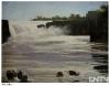吴作人油画风格的鲜明转变是在建国以后。五十年代,他迈开健壮的步伐游历祖国各地,登山越岭,体验生活,朝气蓬勃的建设事业和美丽繁茂的自然风光,都成为画家尽情抒写的称心题材。他创作了《佛子岭水库》、《草原云雨》、《镜泊飞瀑》等许多风景画,反映了心情的愉悦。其中《三门峡》一件富有民族气派的主题性风景,是他计划创作《黄河三部曲》中的第一幅。宏伟的水利建没使他的心情不能平静,他写下的四十四行《三门峡歌》共三阕——《凶险的三门峡》、《人定胜天》、《三门峡市》,唱出了他的激奋的心情。