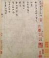 米芾《向太后挽词帖》是其五十一岁时所书。其结字介于行楷之间,笔法精炼,正如前人所说:“研笔如铁,而秀媚之气奕奕行间,风华类得大令(王献之)之神,是南宫得意笔。”米芾这样精致的小楷是极为少见的。叶恭绰记《宋米元章〈向太后挽词〉》载:“米元章书法,以小楷为最佳,但现存仅一件,即《向太后挽词》也。其实,亦系行楷。此物,以前未入过元、明、清三朝内府,以挽词犯忌讳也。”此《挽词》“本为端方所藏,后归景朴孙,又归袁珏生。袁去世后,转入鄞人周湘云手。闻与耶律楚材诗卷,均入故宫博物院矣”。