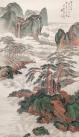 所畫山水得明人遺意,兼精篆刻。這幅《松聲雲影》表現山中瀑流的奇麗景色,氣象恢宏開張,構圖細密謹嚴,筆致流利工穩,意境清深幽雅,頗具宋畫意味。此圖深受傳統宋元山水的影響,筆墨間處處流溢出高逸的韻致。畫幅以大片留白表現山間雲氣,與意脈相連的上下兩處飛瀑密切配合,自然點出畫題。而無論是山石的皴點,還是樹木的勾描,都著意經營,一筆不茍。山石繁密的苔點皴染和形似鷹爪的樹木造型,很自然就會令人想起北宋諸大家的山水範式,畫家技法的嫺熟和功力的深厚於此可見一斑。