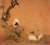 苏武出使匈奴被羁,守节不屈,徙北海牧羊十九年;李陵出征匈奴,力竭被执而降,武帝诛其家,遂不得归汉。李陵闻苏武将返,特来相饯,泫然对泣,不胜哀戚。画幅中苏武与李陵握手道别,景物萧瑟与人物愁蹙的表情相呼应。 陈居中,生卒年不详,宁宗嘉泰(西元一二○一至一二○四)年间,任职画院待诏。此幅敷色古澹,从画风看,约是十四世纪中期后人临本。