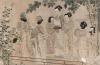此卷用白描法写出七夕夜间庭院中妇女们燃烛斋供的情景。南朝梁宗懔《荆楚岁时记》载:“七夕,妇人结彩缕穿七孔针,陈瓜果子庭中以乞巧。有喜网于瓜上,则以为得。”图中贵夕3成群,或立或坐,或相互交谈,或成群结队,或轻盈漫步,或仰穿针线,动态多姿。众侍女忙于上灯、烧水、。执壶、捧盘、抬桌。画卷结尾到向天斋供为止,类似连续画,反映了七夕乞巧的风俗情景及过程。庭院内以翠竹、假山、松、梧等为布景。七夕聚会,沉浸在秋凉夜静的气氛中。妇女发丝,著墨细匀,衣褶线条流畅,饰纹刻画细致,佩环飘动,得 “吴带当风”之姿。在此选其中两个场景。