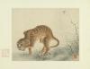 画中树枝栖一山鹞,蓄势下击秋海棠丛中的黑兔。禽、兽野逸之姿,刻画入微;动态活泼,眼睛传神,质感颇强。用干笔枯墨,简括几笔,勾出树枝。花叶色彩浓艳。自识“丙子春正月,新罗山人呵冻写,时年七十有五”。