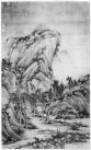 本图无款,以立幅构图画重重叠起的山峦,下部清澈的溪水,曲折的小路通向山中,山坳处茅舍数间,屋中有二人对坐,境界清幽,前人谓巨然之山水,善为烟岚气象,“于峰峦岭窦之外,至林麓之间,犹作卵石、松柏、疏筠、蔓草之类,相与映发,而幽溪细路、屈曲萦带、竹篱茅舍、断桥危栈,真若山间景趣也”。