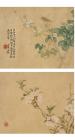 居巢 居燧 汪文畬 1864年作 花鸟 花蝶 扇面 (二开)