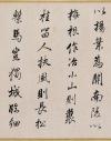 褚遂良为“初唐四家”之一,其《枯树赋》为630年所书,原迹不存,仅有刻本传世,《听雨楼帖》所刻尤精。董其昌刻《戏鸿堂帖》亦收。此卷用洒金笺临,书于1626年,董氏72岁。虽为临书,但自家笔意时有流露,结体疏朗,气脉贯畅。开始笔势柔缓,温雅自如,进而渐趋迅疾,连绵相属。褚书劲挺腴润、摇曳多姿,美如瑶台婵娟,对董氏书风影响颇大。董氏于褚书《褚摹兰亭》《文皇哀册》等无不广泛学习