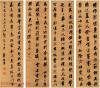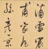 此卷为董临米芾《天马赋》,绢本大字,用笔如风樯阵马,跳宕雄健,为其学米巨制。米芾是鉴藏家兼书法家,董与之相似,故董对米芾有着特别的认同感。董氏中年始受米之影响,甚至认为宋四家中米芾应位于苏轼之上。据《画禅室随笔》所记,董氏一生至少见过四本米芾书《天马赋》,并多次临写。本卷后吕景端题跋就称自己看过三卷董临之作。作于1612年,董氏58岁。
