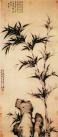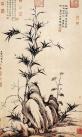 立轴 纸本 墨笔 纵132.8厘 横58.5厘米。此图画竹两竿,依岩石挺拔而立,石旁缀以雅竹小草。竹页以书法之撇笔法写之,墨色浓润,浓淡相间,沉着劲挺。画风从文同中变出,石用披麻长,圆劲浑厚,具有空间及体积感。画面清雅秀美,神足韵高,自有一股劲挺拔俗的清高之气,在元代的画竹大家中自成一派。