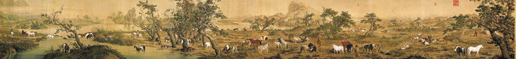 【简介】图卷,绢本,设色画。纵:94.5公分,横:776.2公分。现藏台北故宫博物院。