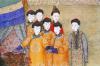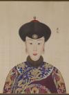 画卷上的后妃女子,进宫时间有先后之别,地位有高低之差,故排列顺序也应合情合理。但仔细孝查画中人物身世,我们却发现了排列上的差错;再看画卷上的裱作痕迹,则更加露出了破绽。 展开画卷,为首者是乾隆皇帝弘历。其画像旁正楷书写“乾隆元年八月吉日”8个小字,标明了作画的时间,当为乾隆登基时的“御容”。画面上,乾隆头戴冬吉服冠,身着明黄五彩云金龙冬装龙袍,面目清秀,神采奕奕,风华正茂。