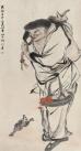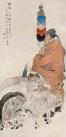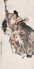 人物画在我国画史上曾经有过非常灿烂的时代,汉唐的壁画、绢画,至今成为人类的瓌宝。元代以降,画风转换,山水、花鸟画渐次蔚为大国,而人物画遭逢冷寂,迄至近代“三任”,特别是任伯年出,人物画又重振雄风,并且融汇新机,更添异彩。观此画,人物造夸张奇伟,生动传神,师法陈洪绶。用婉转流畅、抑扬顿挫的笔法,组成一系列排列有序、纵横交错的构成关系。图中线条已不是为了表现人物的形体结构以及衣纹的起伏转折,而是通过线条的疏密、刚柔、行笔的轻重缓急传达一种富有节奏韵律的视觉形式。任伯年画人物不仅善于抓住描绘对象特定的神情,而且强烈地注入了自己的思想感情。即使取材于神话故事,但其中的人物造型往往选择现实生活中的人,故一睹画面,给人以境界优美的艺术享受。此幅画作有人物画大家程十发鉴定题跋。