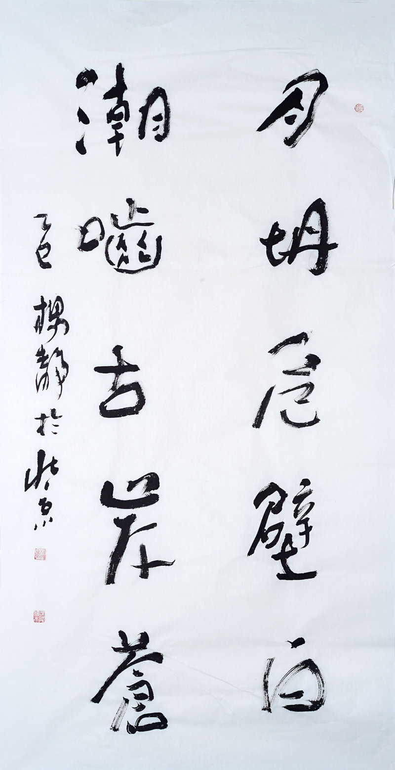 释文:月坍危壁白 潮啮古岸苍乙巳杨静书于北京