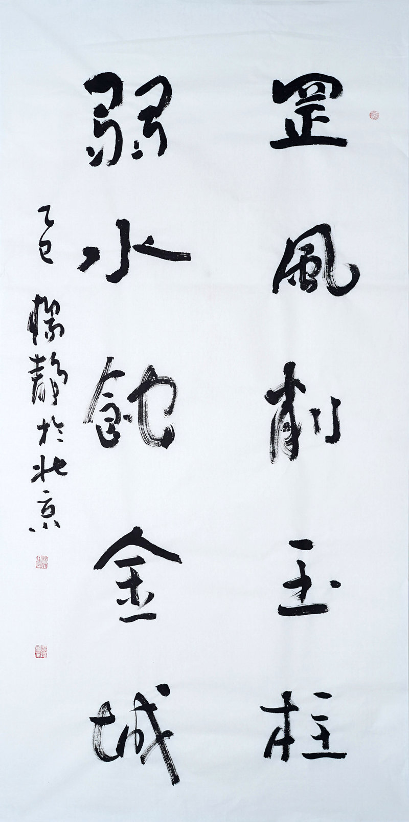 释文:罡风削玉柱 弱水蚀金城乙巳杨静书于北京