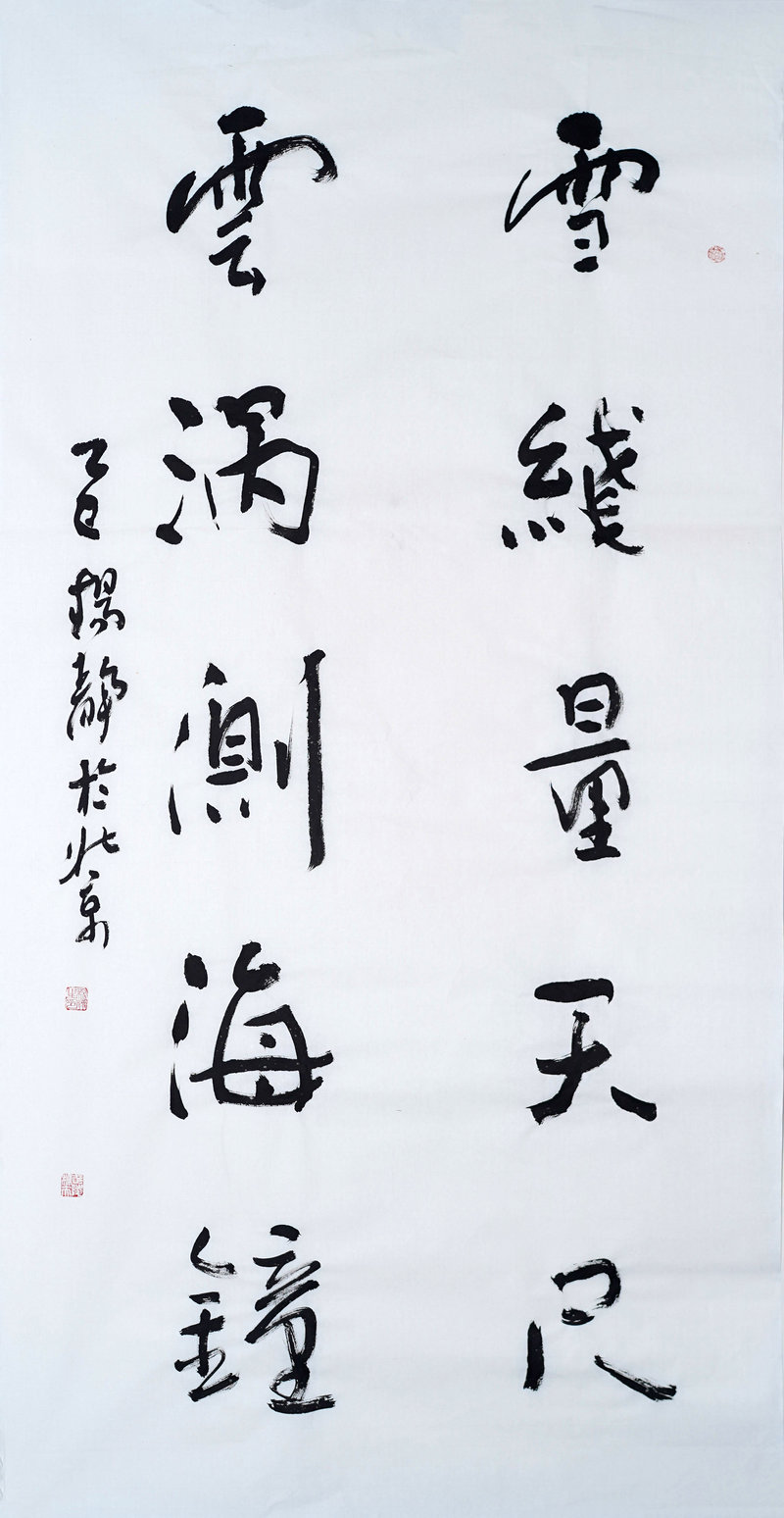 释文:雪线量天尺 云涡测海针 乙巳杨静书于北京