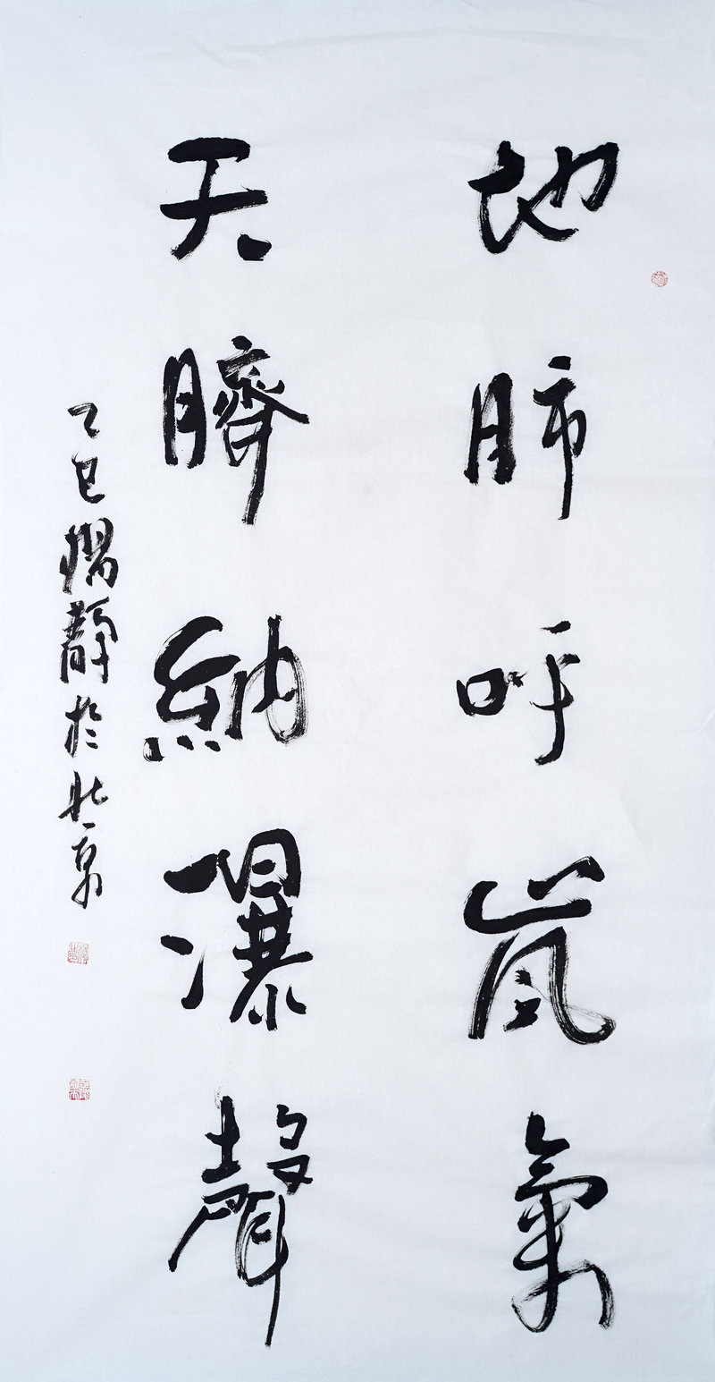 释文:地肺呼岚气 天脐纳瀑声 乙巳杨静书于北京
